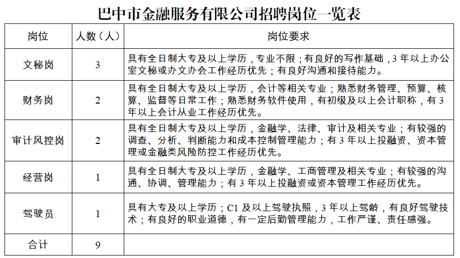 關于招聘巴中市金融服務有限公司工作人員的公告