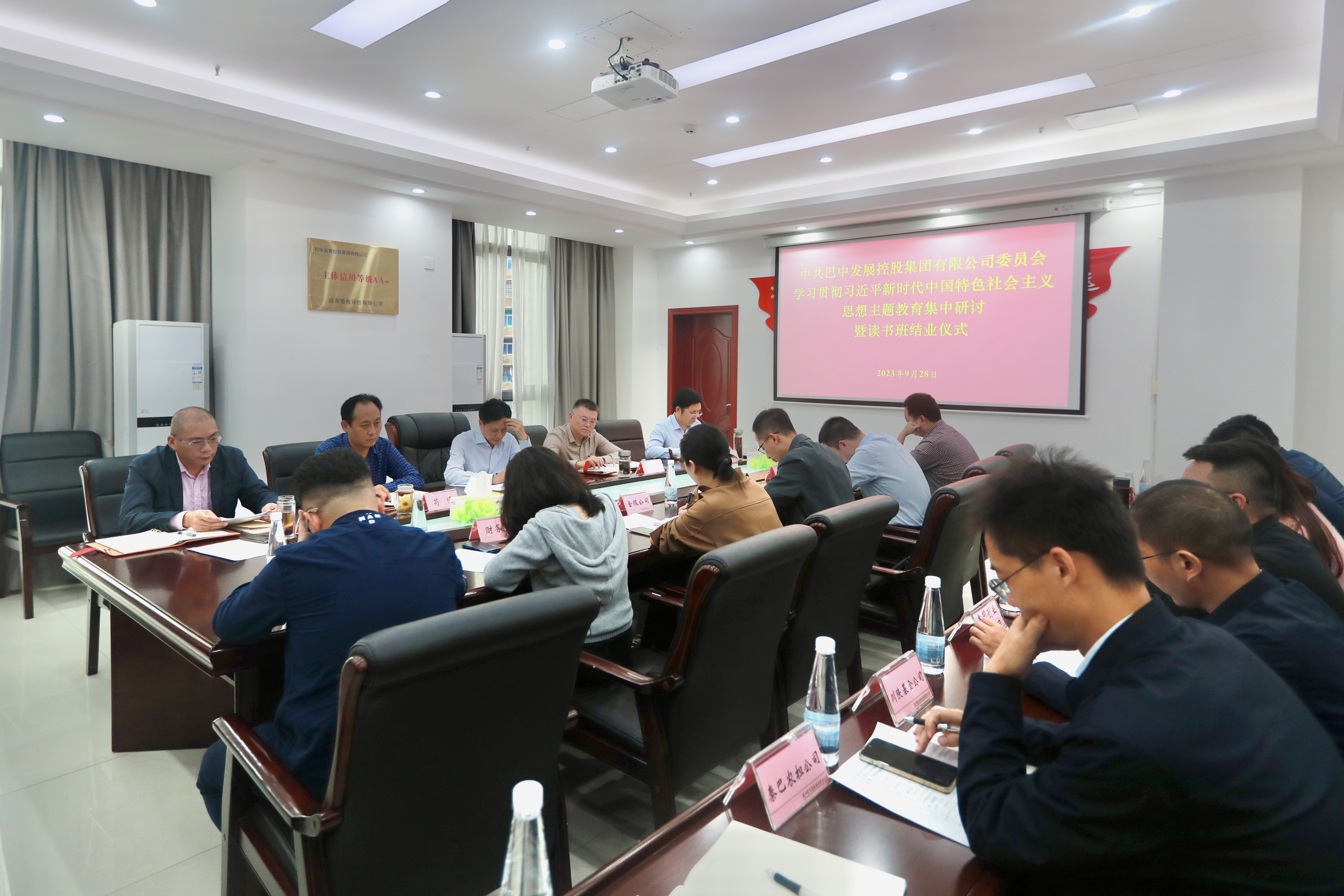 9月28日,中共巴中發展控股集團有限公司委員會舉行學習貫徹習近平新時代中國特色社會主義思想主題教育集中研討暨讀書班結業儀式。集團黨委班子成員出席會議,集團公司中層管理人員、機關全體黨員,各下屬企業主要負責人列席。